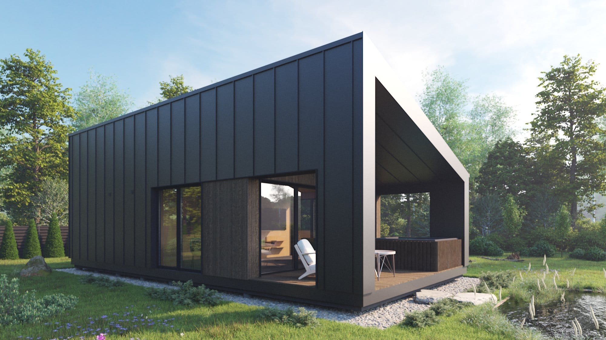 Modernus, kompaktiškas I gr. nesudėtingas statinys – karkasinė pirtis, vieno aukšto, 42m2 bendro ploto su vienšlaičiu stogu. Numatytas funkcionalus išplanavimas: tambūras, priešpirtis, persirengimo patalpa su dušu, sanitarinis mazgas ir pirties patalpa. Prie pastato numatyta terasa su stogine, į kurią patenkama iš priešpirčio.