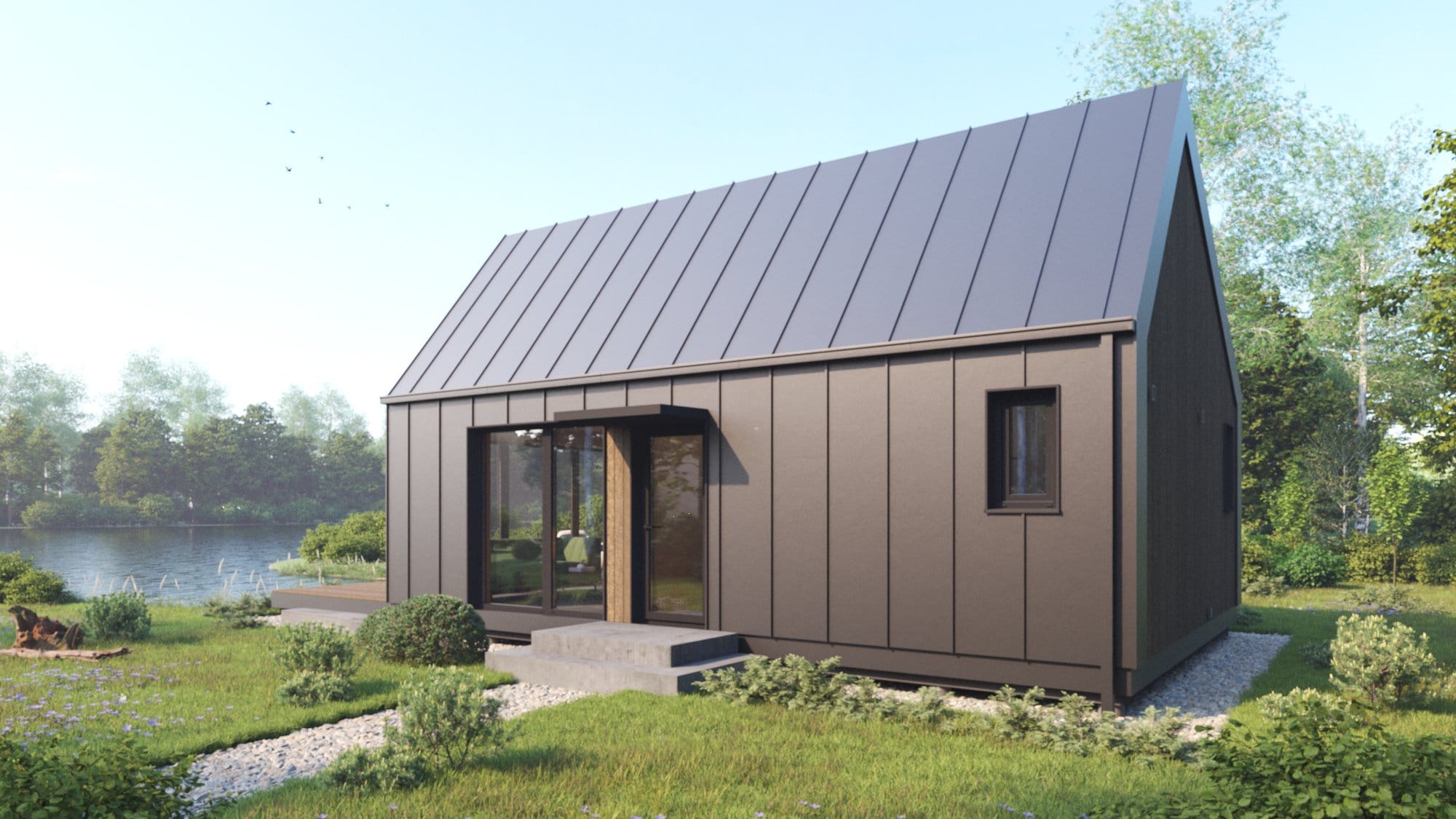 Mes jums siūlome jau parengtus, optimizuotus ir standartizuotus modernaus stiliaus, kompaktiško išplanavimo nesudėtingų statinių projektus, kuriems nereikia statybą leidžiančio dokumento*.
